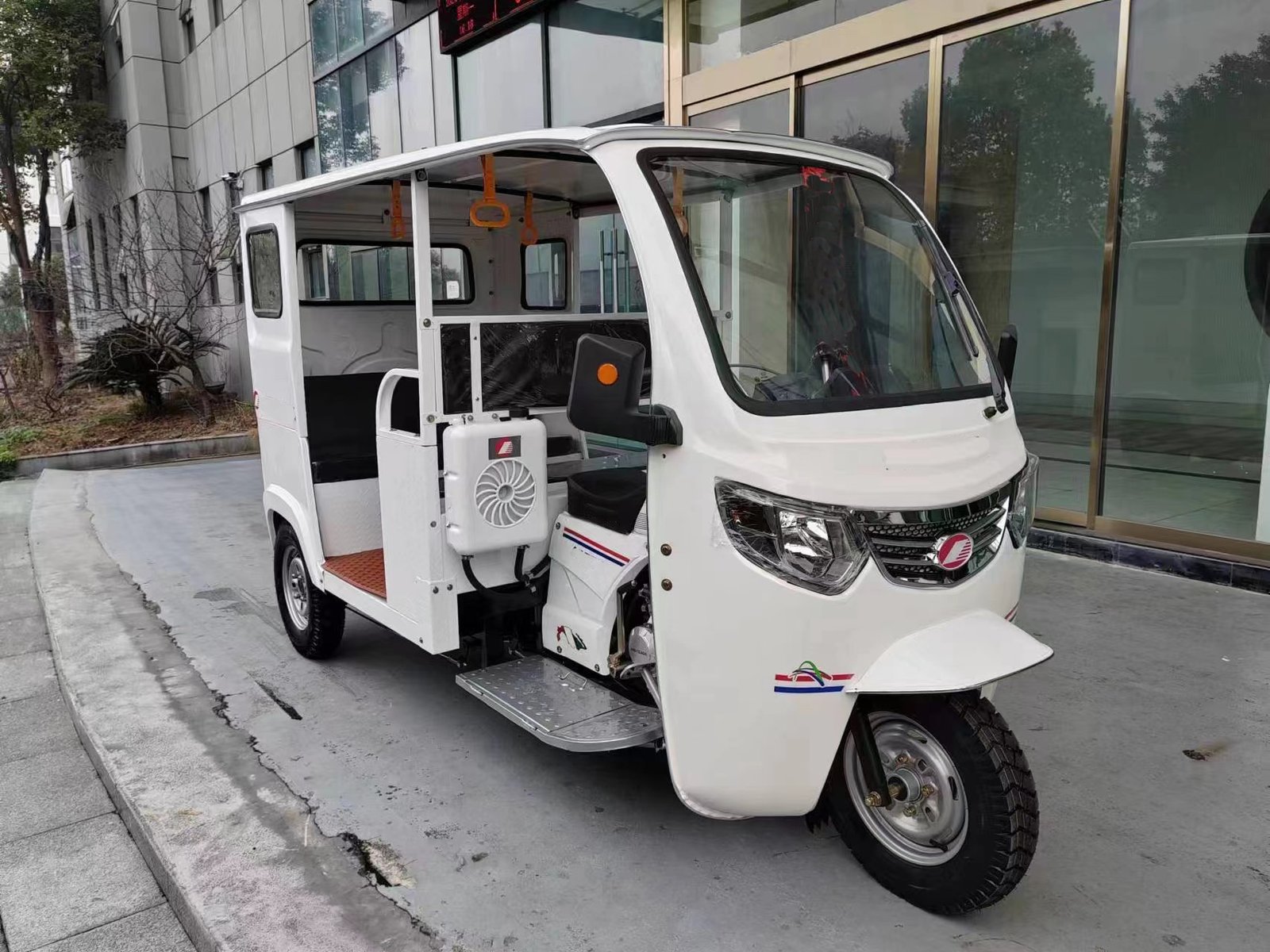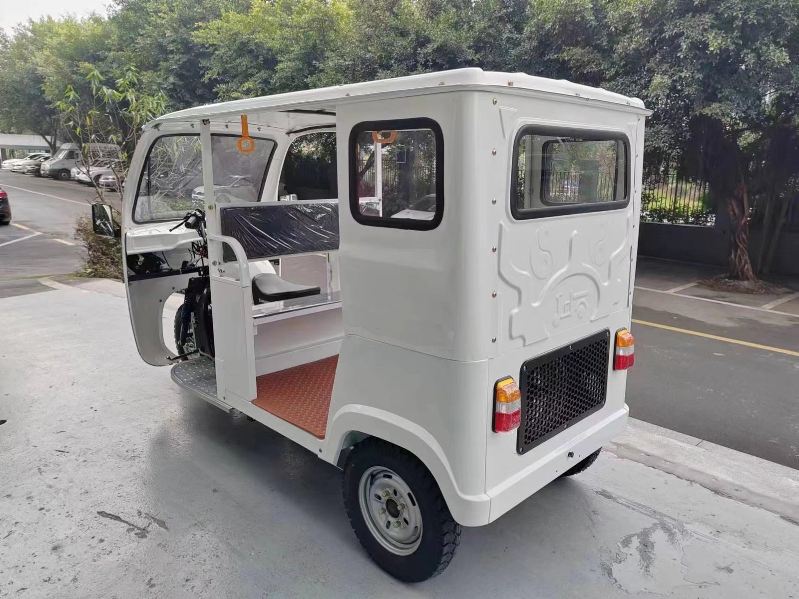 Featuring a 3-seat ergonomic layout (with padded backrests) and front/rear handrails (for passenger safety), it supports up to 300kg, ideal for families traveling to markets, workers commuting to small factories, or elders visiting nearby towns. It also has a sunshade roof, anti-slip footboards, and clear turn signal lights for all-weather safety.