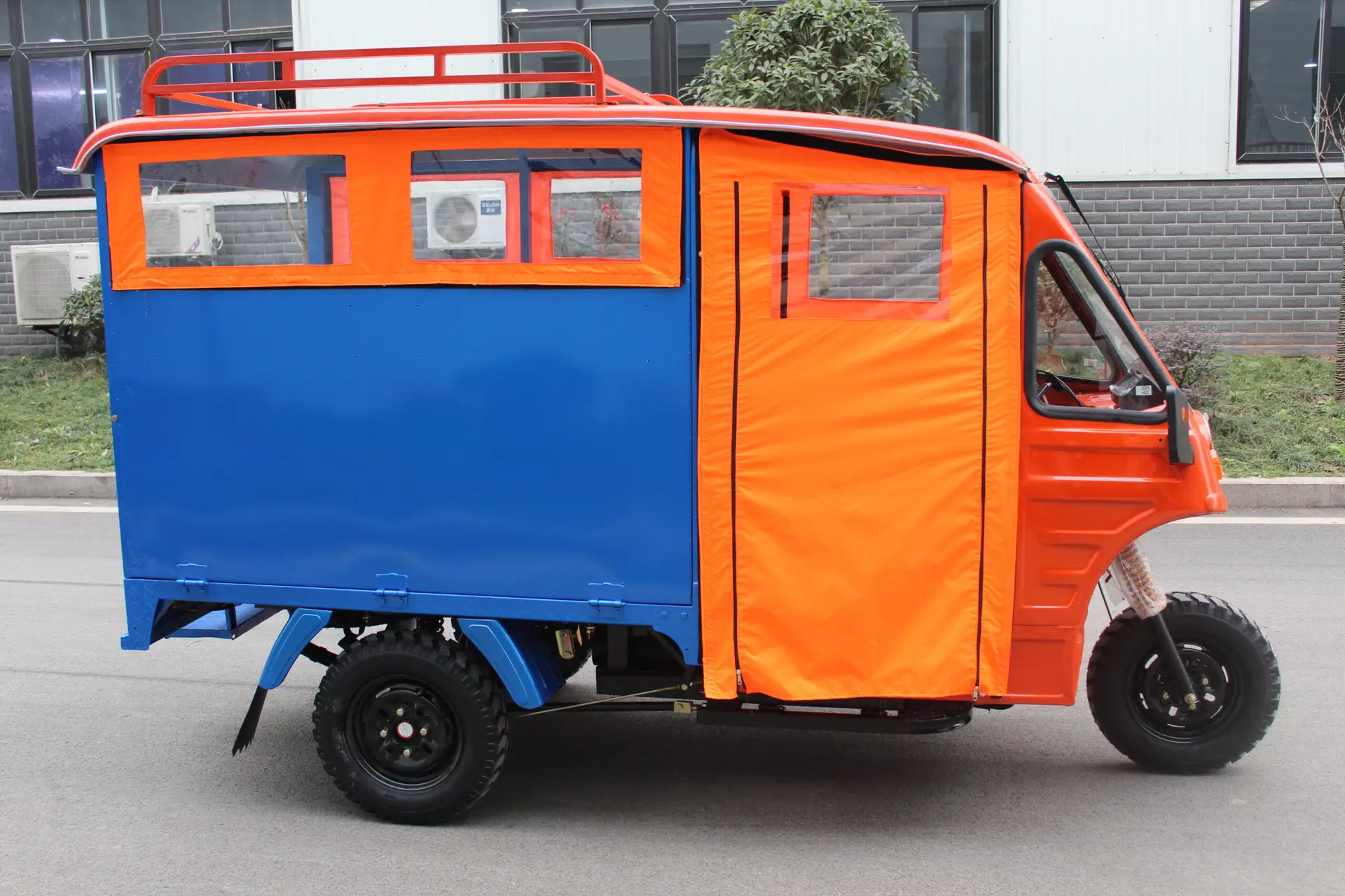 This Gasoline Passenger Tricycle meets basic emission norms, uses readily available spare parts, and needs minimal maintenance. It’s the perfect choice for anyone seeking a secure, weather-ready passenger transport tool.
