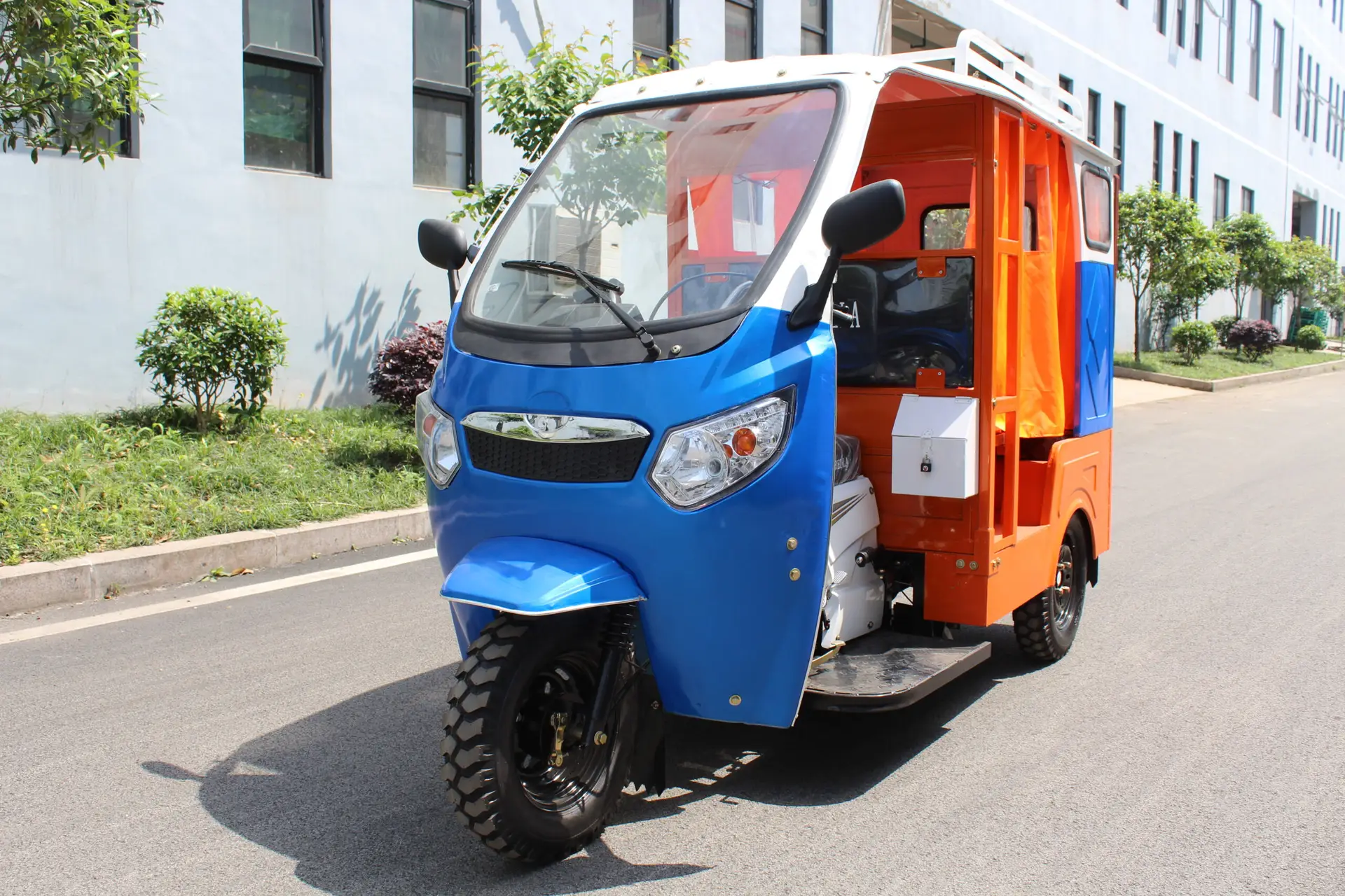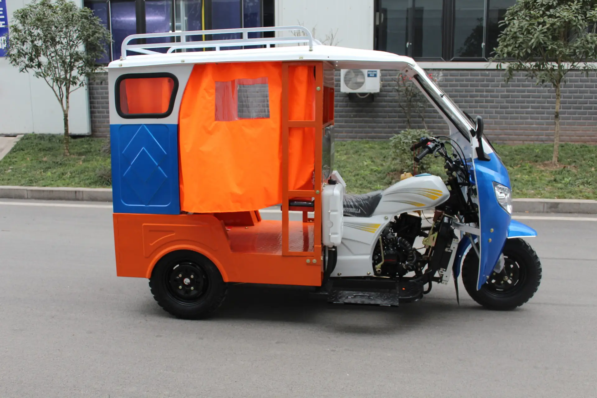 Our Gasoline Passenger Tricycle is crafted for flexible short-distance travel, balancing functionality with passenger ease. Its efficient gasoline engine delivers reliable power—agile on busy street markets, stable over rural gravel roads, and easy to navigate through narrow residential lanes—while keeping fuel use low.