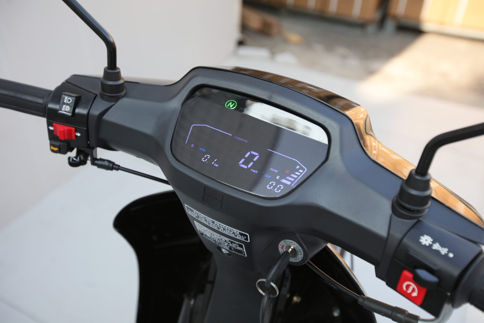 Featuring a low-profile steel cargo rack (for boxes/bags), a comfortable step-through frame (easy to mount), and a lockable under-seat storage (for valuables), it balances practicality and convenience. It also has durable alloy wheels, bright LED headlights, and a simple analog dashboard for easy operation.