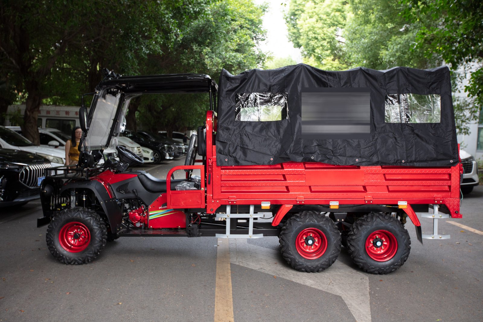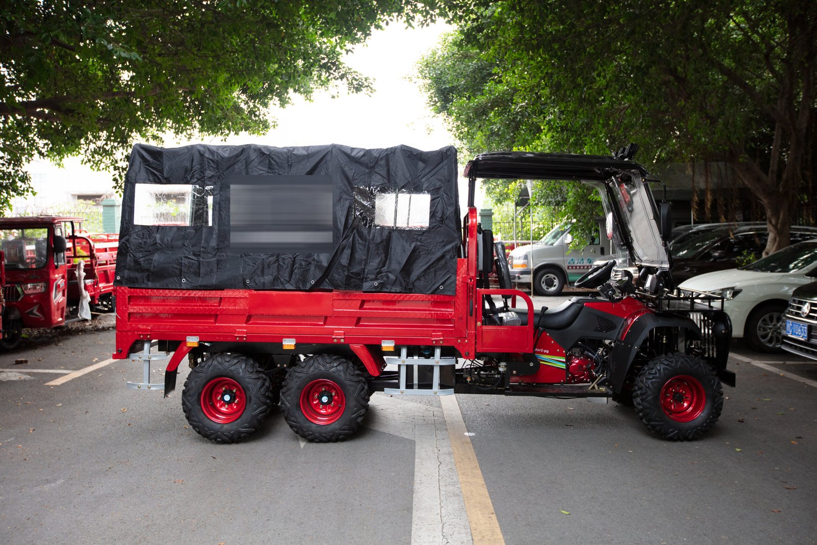 The ATV features a durable six-wheel design, ensuring excellent stability, load capacity, and traction on challenging terrain. With its spacious cargo bed, it is ideal for transporting tools, goods, or materials efficiently, making it the perfect utility partner for both work and leisure.